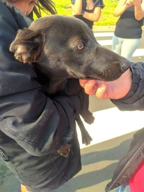 A cachorra se encontra em um lar provisório e vai ser levada ao veterinário para tratar os ferimentos.