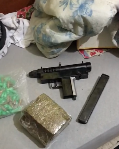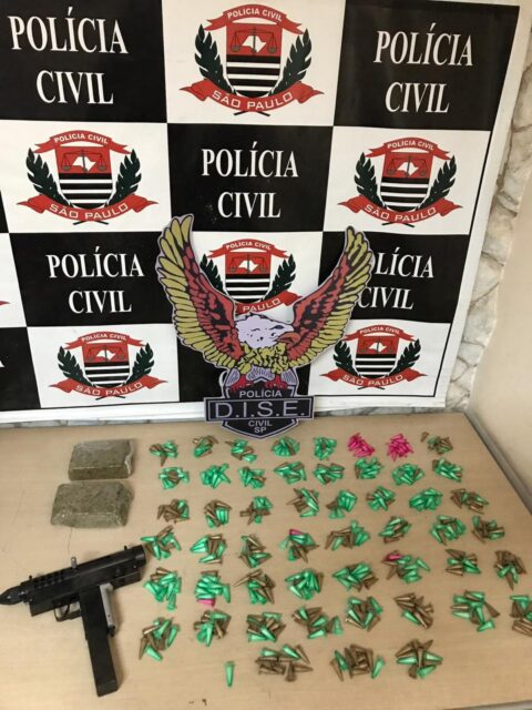 No imóvel do indivíduo, a equipe da DISE encontrou dois tijolos de maconha, 511 porções de cocaína e uma submetralhadora calibre 9 milímetros.