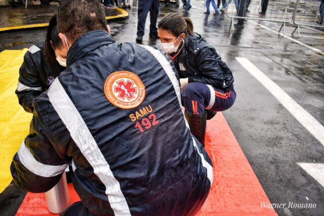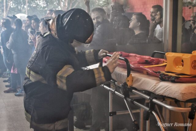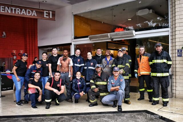 A concentração foi na Praça de Alimentação do piso L2. No local, cerca de 400 participantes foram divididos em grupos para receberem as instruções de segurança, resgate e primeiros socorros em situações de emergência.
