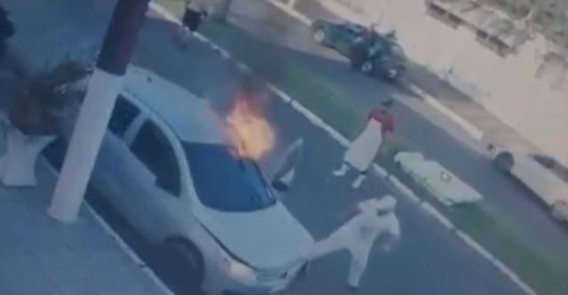 Um policial militar também ajudou no socorro à vitima e abriu as portas do veículo, mas o fogo ganhou ainda mais força. Depois de algumas tentativas, a técnica de enfermagem foi retirada pelo policial. Os bombeiros conseguiram controlar as chamas minutos depois.