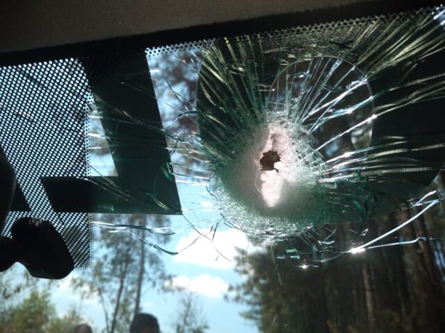 A mulher teve um ferimento na nádega. O bebê nada sofreu. Ambos foram socorridos e levados para um hospital.