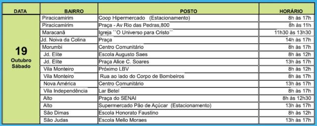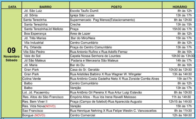 Dias e horários da vacinação nos bairros