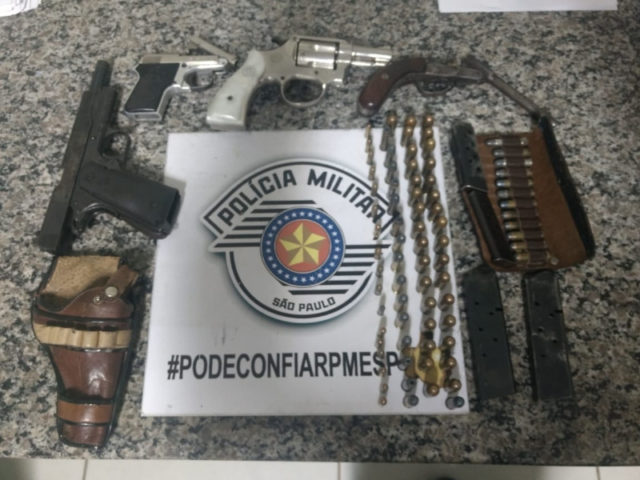 Nada de ilícito foi encontrado com o indivíduo, porém, dentro do automóvel, foi encontrado uma pistola Taurus calibre 635. Na casa do indivíduo, foram encontrados ainda um revólver Taurus calibre 38 com 28 munições do mesmo calibre, uma pistola Colt calibre 45 e um revólver Rossi calibre 22.