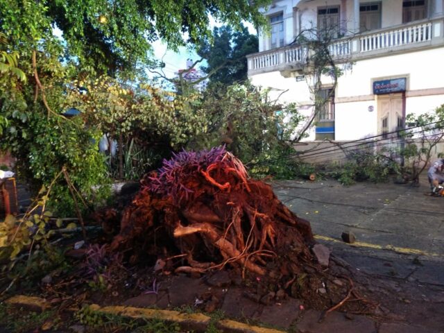 Uma das árvores que caíram foi na Avenida Doutor Paulo de Moraes, em frente a estação da Paulista. O Corpo de Bombeiros foi acionado e fez o corte.