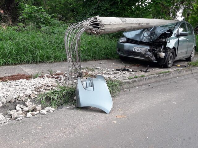 Segundo o que apuramos, após a colisão, que terminou com o poste em cima do veículo, o carro ficou até o período da tarde no local aguardando a remoção.