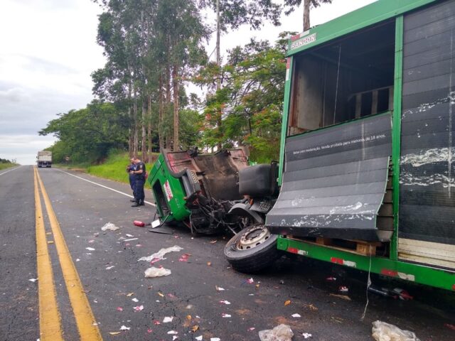 Com a forte colisão, a cabine do caminhão foi inteira danificada e ficou caída na rodovia. O motorista foi socorrido e encaminhado ao Pronto Socorro de Piracicaba.