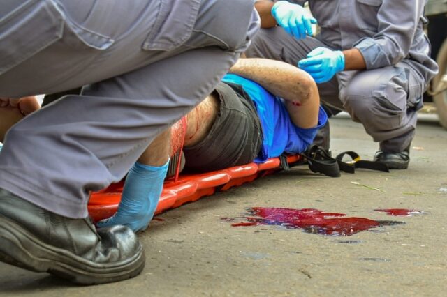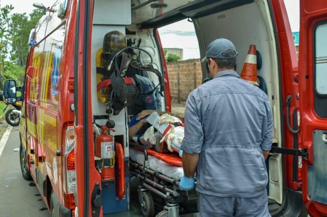 Segundo informações da Unidade de Resgate, a vítima sofreu uma grande laceração na perna direita com exposição óssea, além de fratura de tíbia/fíbula e escoriações pelo corpo.