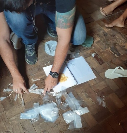 Após identificar o imóvel onde os quatro indivíduos estariam embalando as drogas, policiais civis armaram um cerco no local e lograram êxito em abordar os criminosos. Todos foram flagrados no exato momento em que fracionavam entorpecentes.