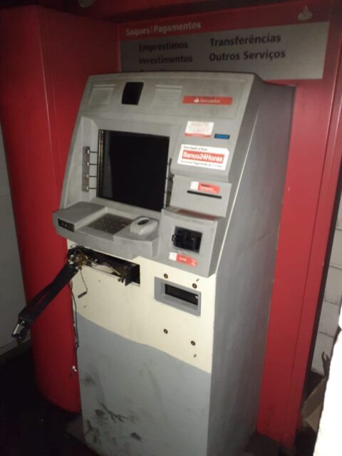 O porteiro contou que, ao término do turno dos funcionários, dois criminosos armados com uma pistola o renderam, o amarraram e o levaram para dentro do estabelecimento, onde deram início ao processo de arrombamento dos caixas eletrônicos do banco Santander com o uso de maçarico. Apesar dos criminosos tentaram roubar os dois caixas da agência, apenas um acabou aberto.