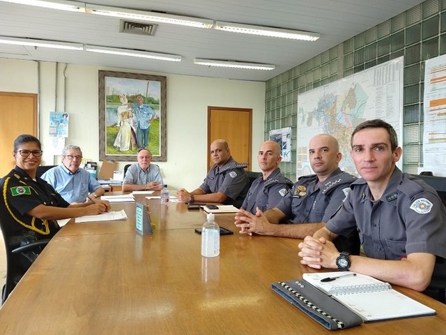 Participaram do encontro o Major PM Marcelo de Oliveira do 10º BPMI, Saulo Vieira Runho (5ª Cia), Emanoel Oliveira (4ª Cia) e Daniel Munhoz de Oliveira (1ª Cia), além de Lucineide Maciel (comandante da Guarda Civil) e José Antonio de Godoy, secretário municipal de Governo.
