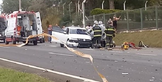 De acordo com o tenente Beraldo do Corpo de Bombeiros, três carros foram envolvidos no acidente – uma caminhonete Silverado, um Ford Ecosport e um Volkswagen Jetta.