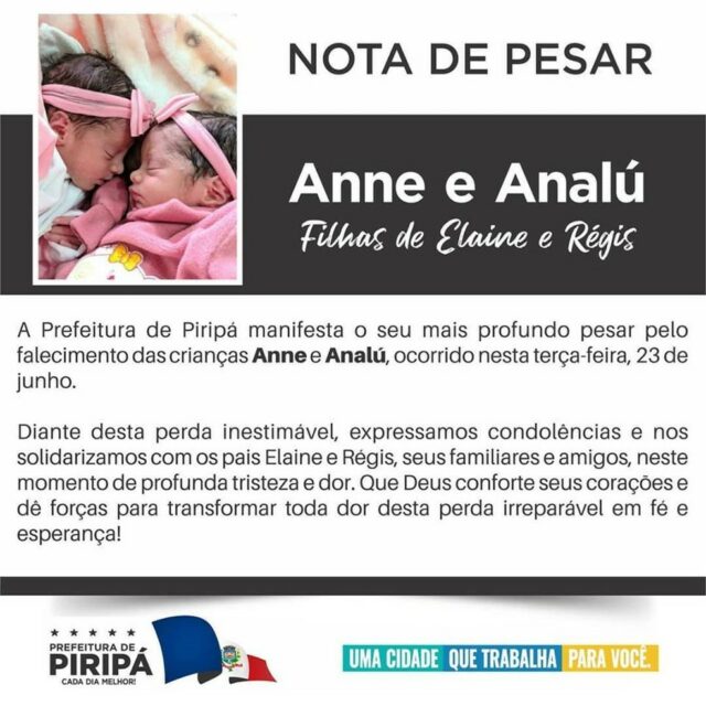Confira abaixo a nota de pesar publicada pela Prefeitura de Piripá: