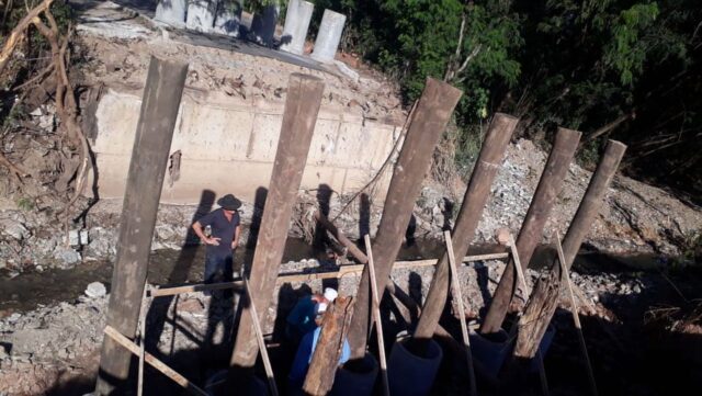A previsão é que os trabalhos sejam concluídos em 30 dias, caso as condições climáticas permitam. A antiga ponte, de mais de 20 anos, foi demolida por não ter mais condições de reparo.