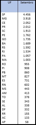 Dos 27 Estados brasileiros, São Paulo, Minas Gerais, Ceará, Paraná e Santa Catarina se destacam com os maiores números de solicitações de indenização por acidentes em setembro. Juntos, os cinco estados somam 45% de todos os avisos recebidos no mês.