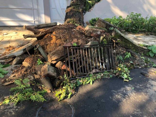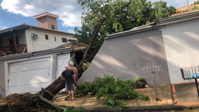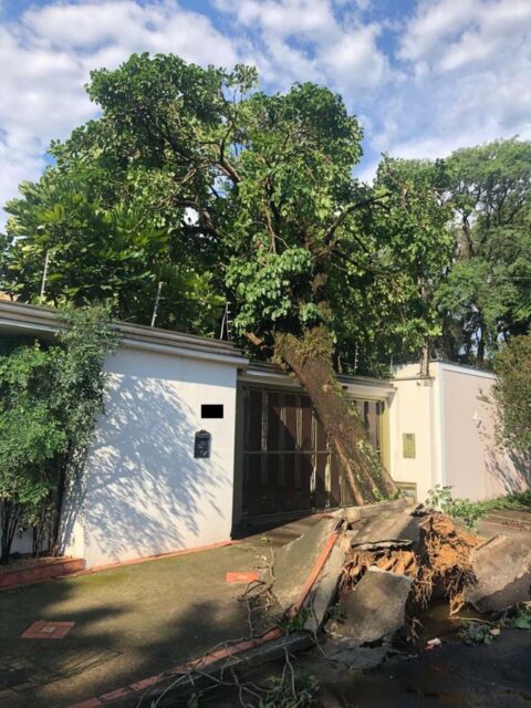 Após a queda da árvore, uma família que estava dentro de um dos imóveis afetados ficou parcialmente presa, já que a mesma caiu sobre o muro e destruiu toda a parte da frente, bloqueando a passagem.