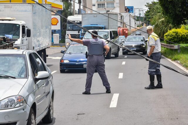 Com a queda do poste, o fio de energia elétrica, de 13 mil volts, caiu sobre a via. A CPFL foi acionada.