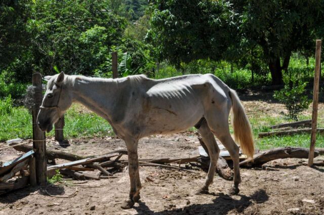 De acordo com a protetora, chegando ao local foi constatado inúmeros problemas de saúde no cavalo, como dentição, infestação de carrapatos, extrema magreza e outros.