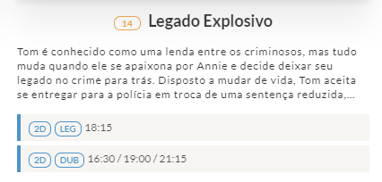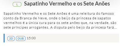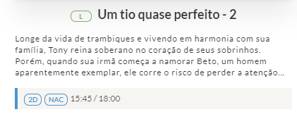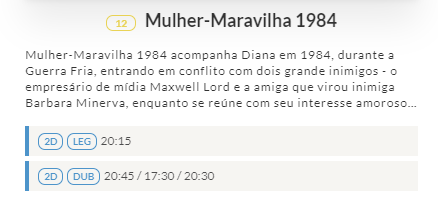 Para saber o horário, basta ir clicando no botão a baixo. Os filmes estão organizados pela numeração que colocamos acima!
