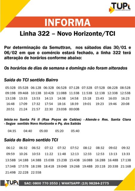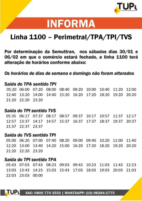 Após às 13h dos sábados, a oferta regular de viagens será mantida, quantidade correspondente à demanda do domingo. A medida visa adequar a frota à demanda, sem prejuízo aos demais trabalhadores.