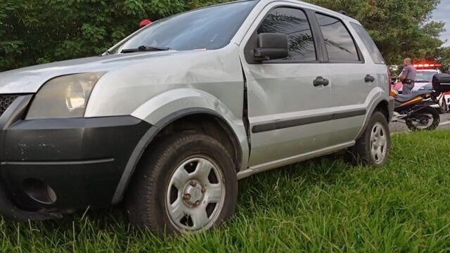 Segundo apurou nosso repórter no local, a motocicleta, uma Honda CB-300, com as vítimas, colidiu na lateral de uma Ford Ecosport prata.