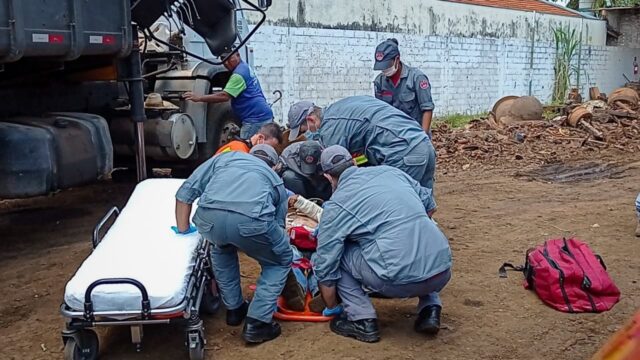 Um homem de 53 anos sofreu um grave acidente de trabalho na manhã desta segunda-feira (15), em um centro de coleta de sucatas, localizado na Avenida 1º de Agosto, no bairro Areião, em Piracicaba (SP).