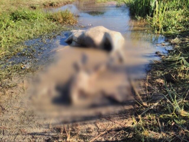 Segundo informações, após a solicitação de um morador de um sítio no bairro Pau D’alinho, a equipe se deslocou até o referido local. O solicitante informou que ao verificar um pasto em meio a várzea, visualizou uma grande quantidade de corvos, quando se aproximou, encontrou um boi morto e ao lado do animal um cadáver já em avançado estado de decomposição.