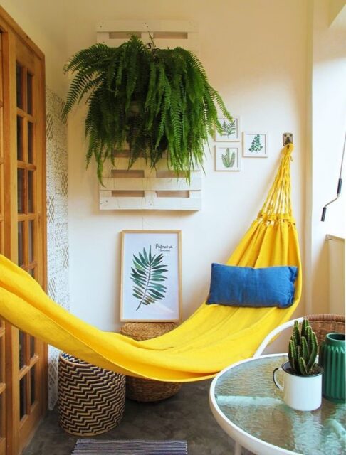 5 – SACADAS E REDES: Redes para deitar nas sacadas são ideias para quem gosta de observar o céu e o passar do dia. Este item é decorativo e funcional, além de fácil de guardar.