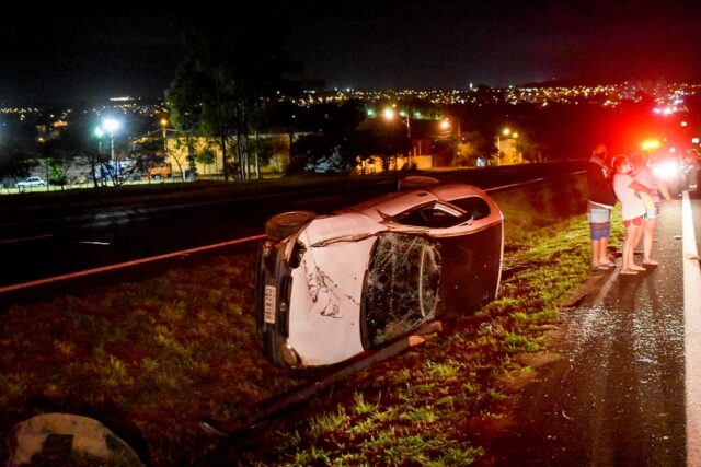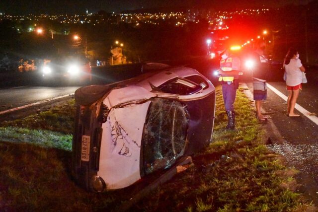 Uma mulher de 42 anos capotou um carro há cerca de uma hora na Rodovia Geraldo de Barros, que liga Piracicaba a São Pedro (SP). Ela não soube informar o que aconteceu.