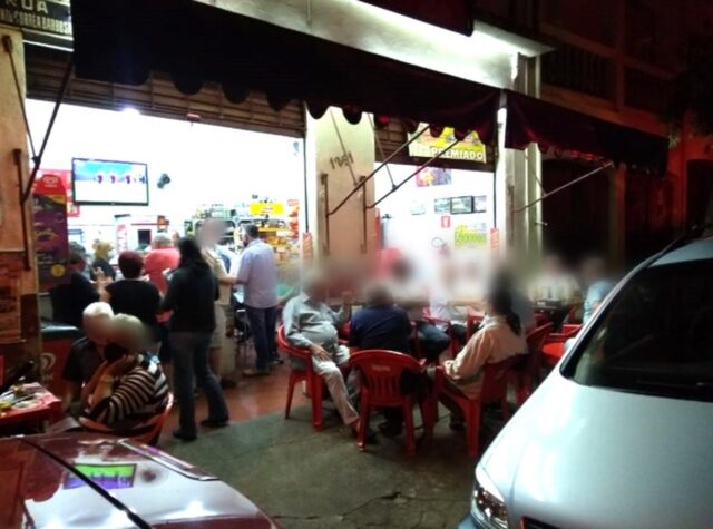 Um bar localizado próximo ao SESC, na região central da cidade, que já foi orientado, notificado e interditado pela força-tarefa, voltou a chamar atenção na última quinta-feira (06), quando promoveu novamente aglomeração em suas dependências, com a maioria dos presentes sem a utilização de máscara. Diante do quadro de reincidência, o estabelecimento comercial recebeu um auto de infração.