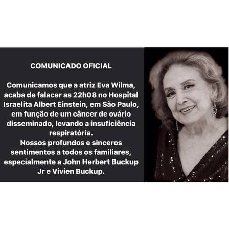 Acaba de falecer a atriz da TV Globo Eva Wilma. Este é um plantão do PIRANOT neste sábado (15), às 23h25.
