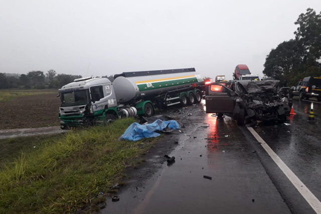 Nesta sexta-feira (21), uma pessoa morreu e outras três ficaram feridas em um acidente, entre um carro e um caminhão de combustível, na RSC-287, em Venâncio Aires (RS). A informação é da TV RBS.