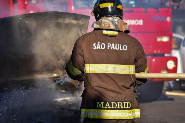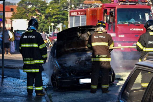 O fogo teve início no motor e queimou toda parte interna e externa do veículo, deixando-o totalmente destruído. Felizmente, ninguém ficou ferido.