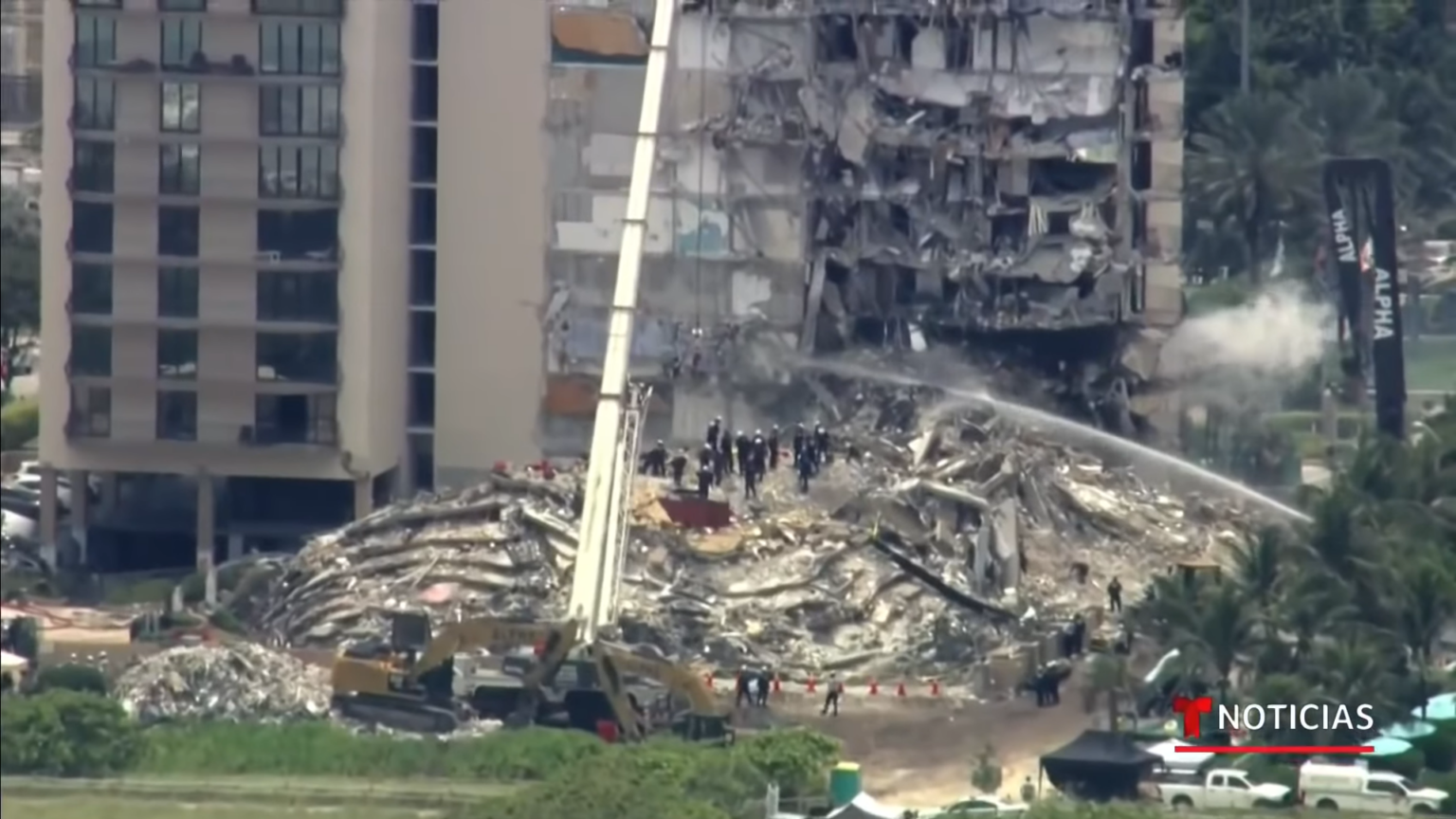 Segundo a Telemundo, os bombeiros conseguiram abrir um buraco entre as lajes e adentraram em uma parte dos escombros. Isso permitiu uma aceleração na retirada dos corpos e outros restos mortais. Na semana passada, um adolescente e a mãe foram resgatados com vida – os únicos – até agora. A mulher, no entanto, faleceu pouco depois no hospital.