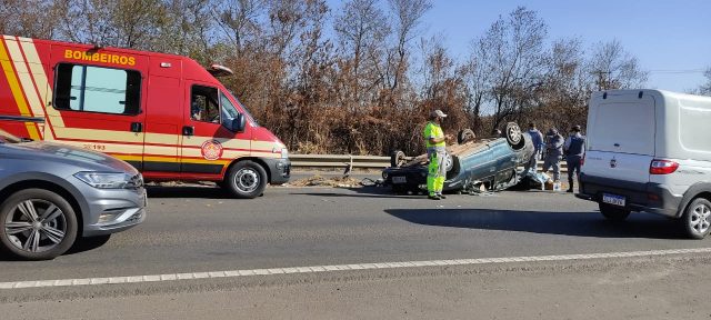 Um carro capotou na tarde de ontem (26), na Rodovia Luiz de Queiroz, que liga Piracicaba a Santa Bárbara d’Oeste (SP). O motorista do veículo recusou atendimento médico.