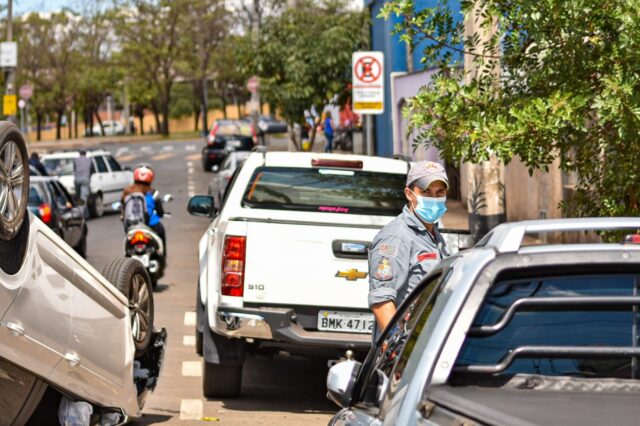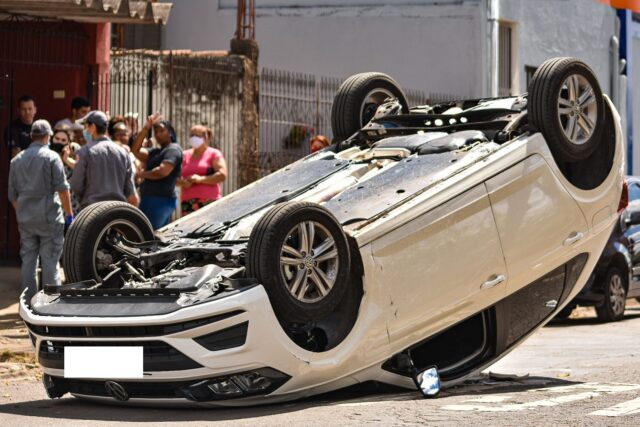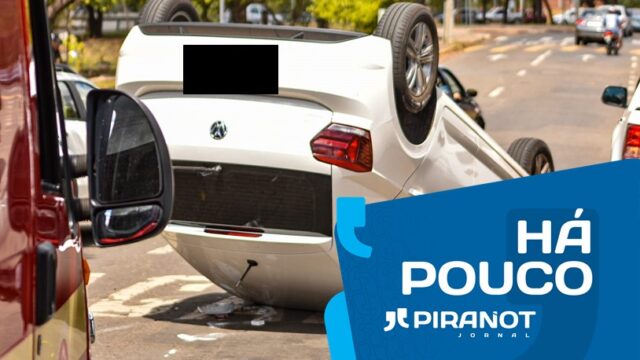 Um carro capotou após uma colisão na frente de um mercado no Jaraguá, em Piracicaba (SP), no final desta manhã (30). Não houve feridos.