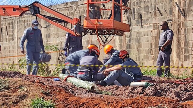 Um homem de aproximadamente 40 anos foi resgatado pelo Corpo de Bombeiros na manhã desta segunda-feira (30) após ficar em buraco de uma obra desde o último sábado (28). Segundo informações, ele foi agredido e jogado nu dentro do buraco na noite de sábado.
