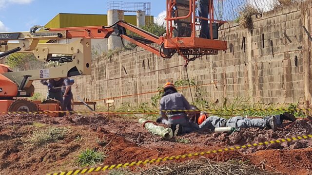 A obra fica na Rodovia Cornélio Pires, sentido Saltinho (SP). A vítima foi socorrida para a Santa Casa com possíveis fraturas de clavícula, tíbia e punho, além de escoriações pelo corpo. Ele também apresentava marcas de outra agressão.