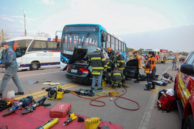 Uma mulher de 27 anos morreu após bater o carro que dirigia, um Honda Civic, contra a frente e lateral dianteira de um ônibus da empresa InterCamp que fazia a linha Jardim Campo Bello, em Campinas (SP). O acidente foi por volta das 06h30.