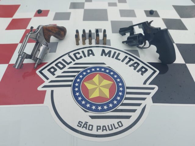 Com a chegada da outra equipe e demais viaturas, foi realizada busca na residência, e dois revólveres calibre .38, ambos carregados com 5 munições cada foram localizados. No interior da mochila foram encontrados alguns Pen Drives e R$ 1.075 reais em espécie.