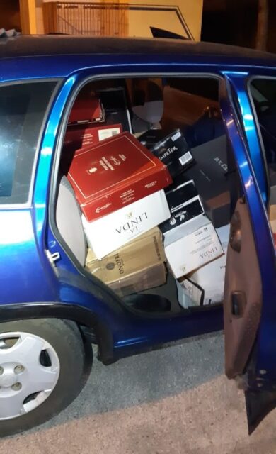 A Polícia Rodoviária Federal apreendeu mais de 400 garrafas de vinho importadas irregularmente da Argentina na BR-470, em Rio do Sul, no Vale do Itajaí. As bebidas estavam distribuídas entre o porta-malas e o banco traseiro do carro. O motorista de 20 anos foi preso e vai responder por crime de descaminho.