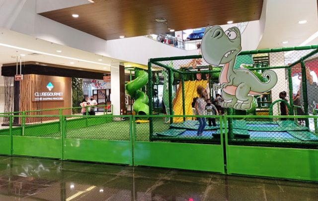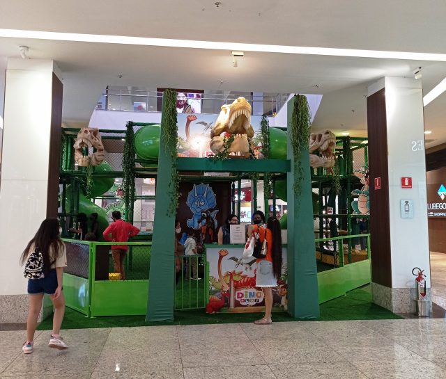 A temática de dinossauro está na decoração e no portal da bilheteria. O funcionamento é de segunda a sábado, das 10h às 22h e aos domingos e feriados, das 14h às 20h.