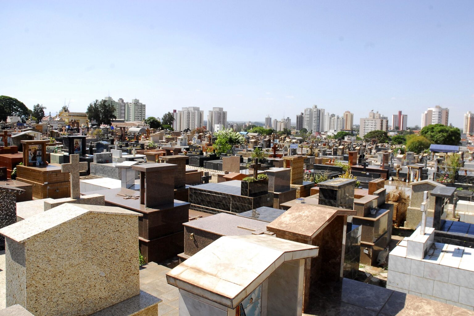 Em vistoria realizada nos cemitérios na última semana, o Programa Municipal de Combate ao Aedes (PMCA) encontrou, nos cemitérios municipais, cerca de 65 vasos de flores com plásticos ou sem furos no fundo. A ação teve por objetivo fiscalizar a existência de objetos que fossem possíveis criadouros do mosquito Aedes aegypti, responsável pela transmissão de doenças como dengue, zika e chikungunya, além de preparar o espaço para o Dia de Finados.