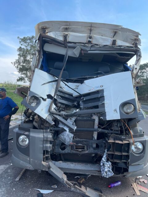 Segundo o tenente Humphreys, o acidente foi pouco depois do pedágio, em uma subida, no quilômetro 06. “Pelo local socorremos o motorista de um caminhão de pisos que bateu na traseira de um outro caminhão, este de concreto. Ele estava preso às ferragens e, durante o socorro, apresentou ferimentos na cabeça e perna”, contou.