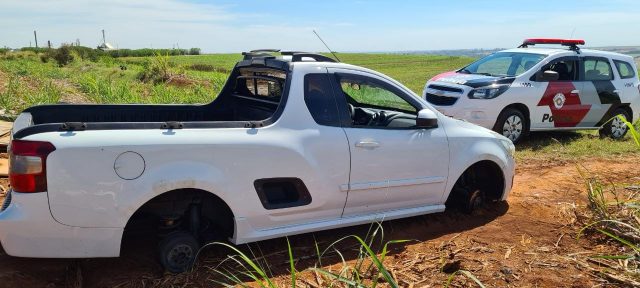 Os policiais foram até o local informado e localizaram um Chevrolet Montana produto de roubo. Diante dos fatos, o indivíduo recebeu voz de prisão e foi encaminhado à delegacia.