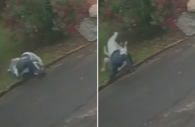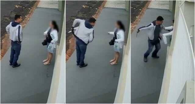 Uma câmera de segurança registrou a tentativa de homicídio. Veja abaixo as imagens: