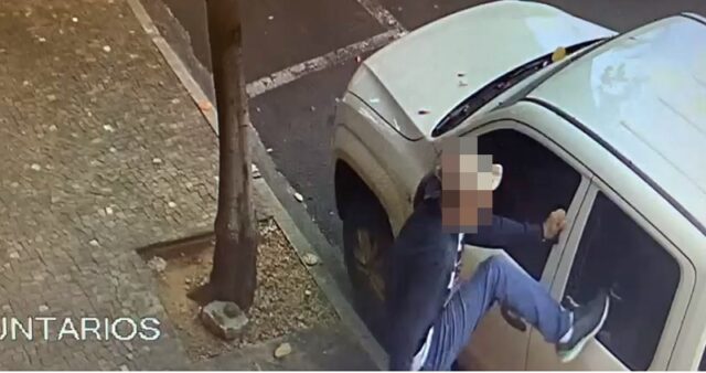 Nas imagens (veja vídeo mais abaixo), é possível ver que o indivíduo visualiza a bolsa que estava dentro do carro, quebra um dos vidros laterais, furta o objeto e foge em seguida. Data e horário do crime não foram obtidos.