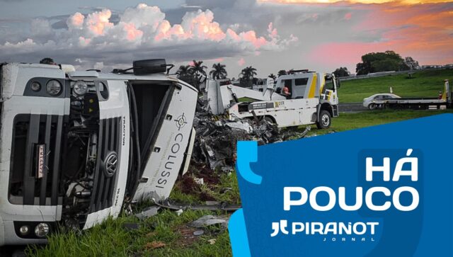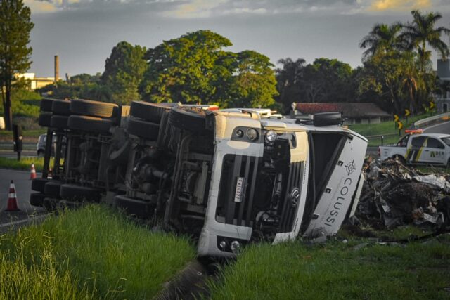 Um caminhão com sucata tombou na alça de acesso ao Uninorte, na Rodovia Luiz de Queiroz, em Piracicaba (SP). O motorista, de 38 anos, foi socorrido pelo SAMU para a Santa Casa.