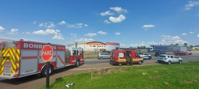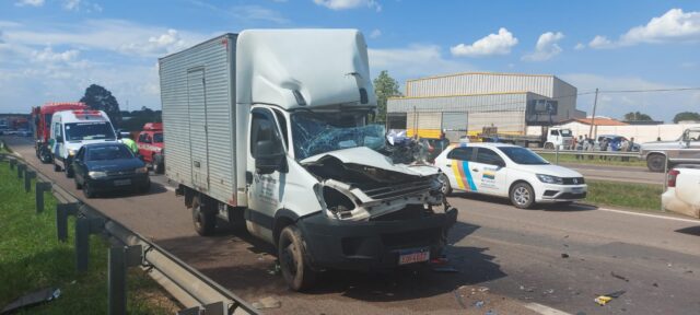 Segundo informações apuradas, o motorista de um caminhão de pequeno porte colidiu contra a traseira de um caminhão de grande porte. Ele ficou preso às ferragens e foi retirado pelo Corpo de Bombeiros com ferimentos no rosto e no peito, após bater no para-brisa do veículo. As causas do acidente serão investigadas.