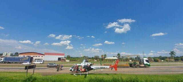 O helicóptero Águia da Polícia Militar também ficou de prontidão no local do acidente caso necessário.