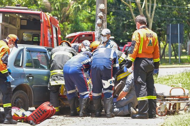 O noivo da condutora, que estava no banco de passageiro do carro, sofreu um corte extenso no rosto e foi conduzido pelo resgate do Corpo de Bombeiros ao Hospital Santa Casa. A motorista não sofreu ferimentos.